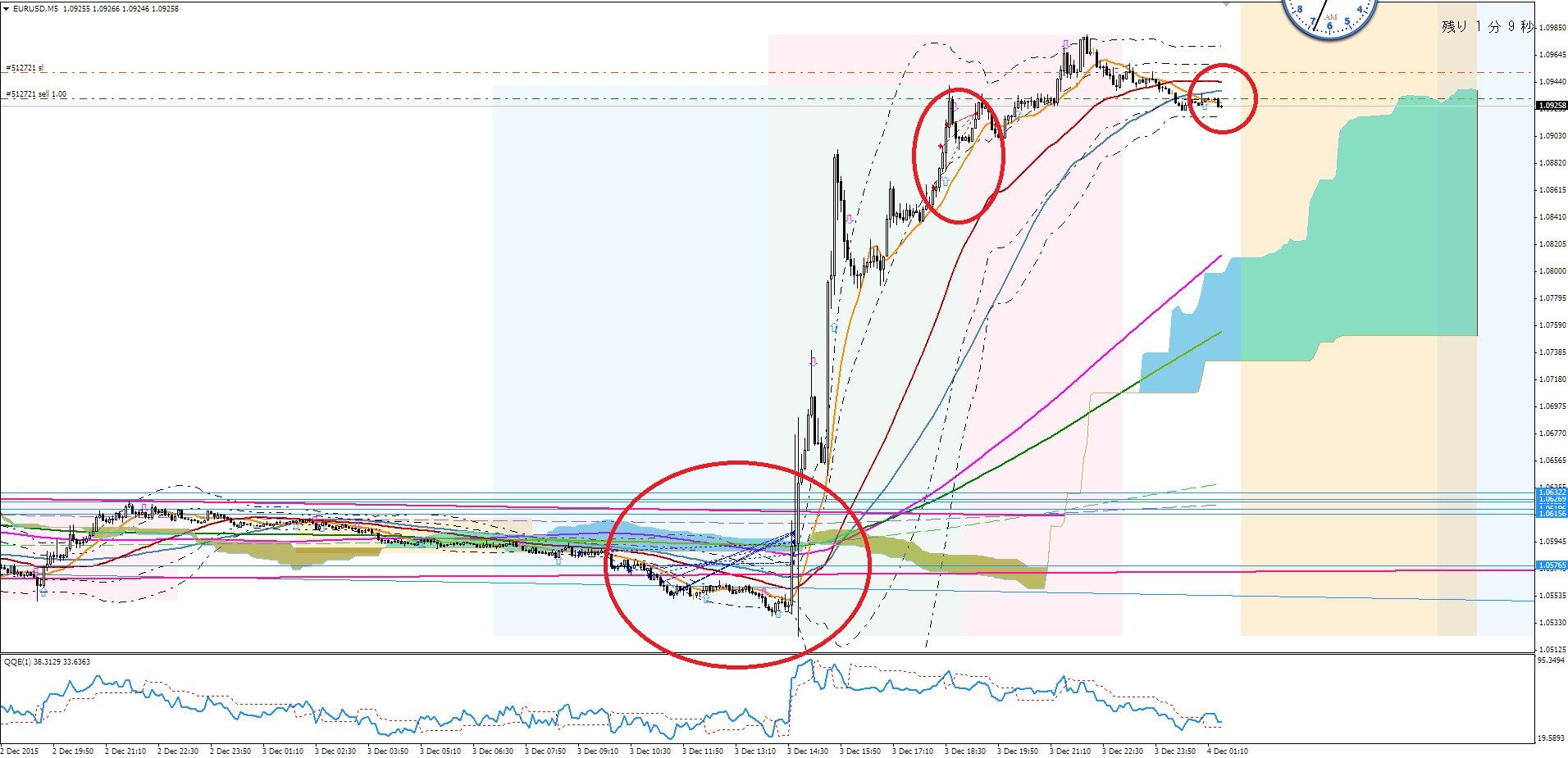 夕方 ECB前から ユロルでポジ持ち始めたけど、その前の日からの上昇からの押しが入ってる局面