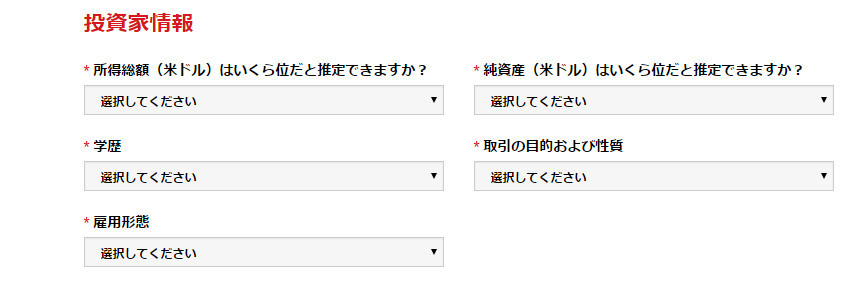 ご自分のトレード経歴をだいたいで良いので選択入力します。