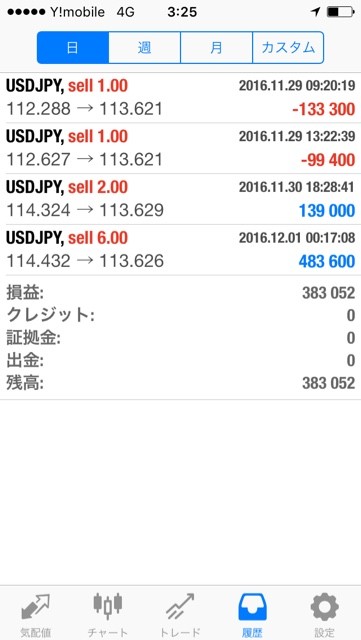 もう 数日前の事だから 記憶も確かではないのだけれど、履歴で確認すると 112.2のショートと112.6のショートを今朝まで ホールドしてたわけだ。