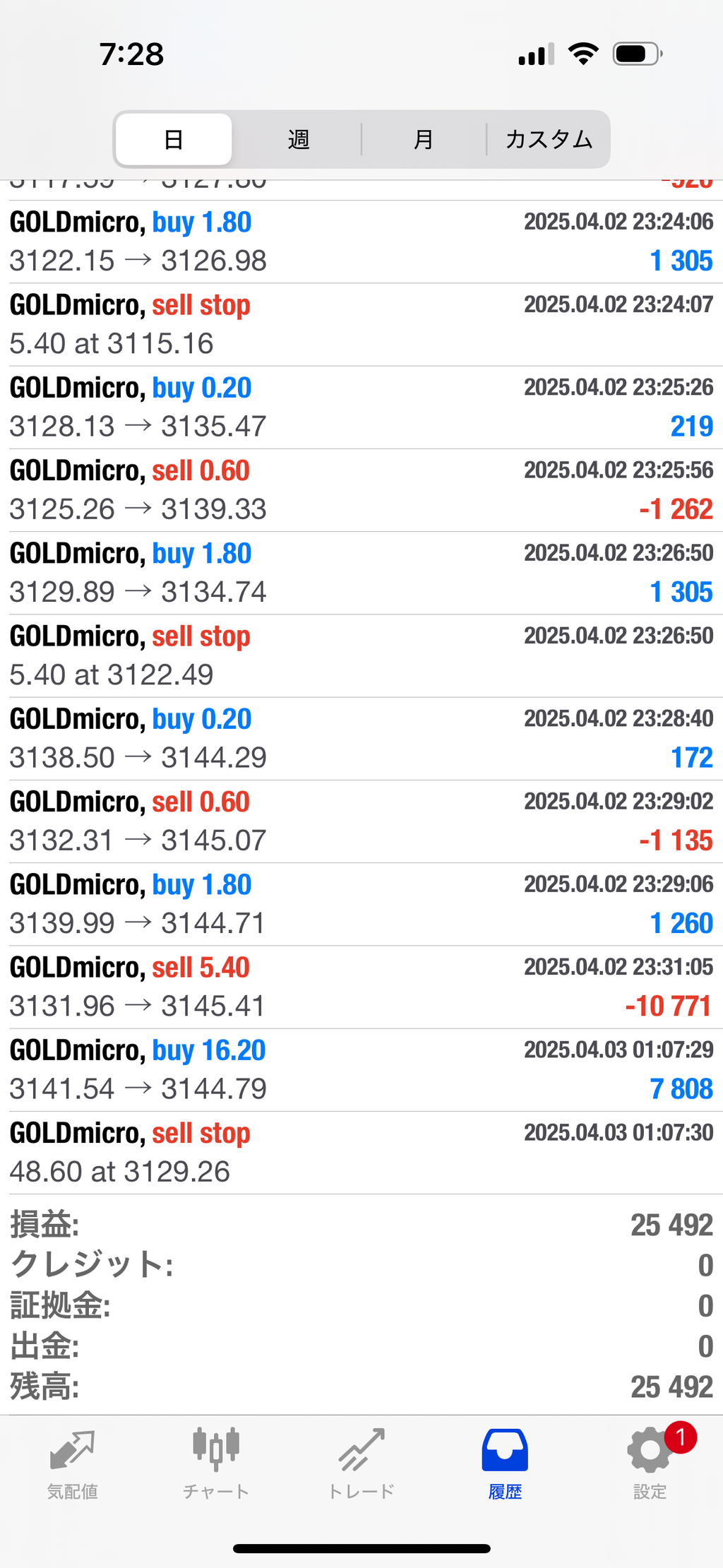 終日通してストレスのない稼働でコツコツ利確。4月2日と比較すると安定した稼働。